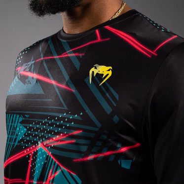 Men’s UFC Fusion By Venum Miami Edition Black Fight Week Dry-Tech T-Shirt is a lightweight performance shirt with enough stretch to move with you. You’ll stay comfortable and cool with the shirt’s Dry-Tech fabric, even during the most intense training sessions. The contrasting vibrant blue and red lines capture the tropical vibes of Miami.